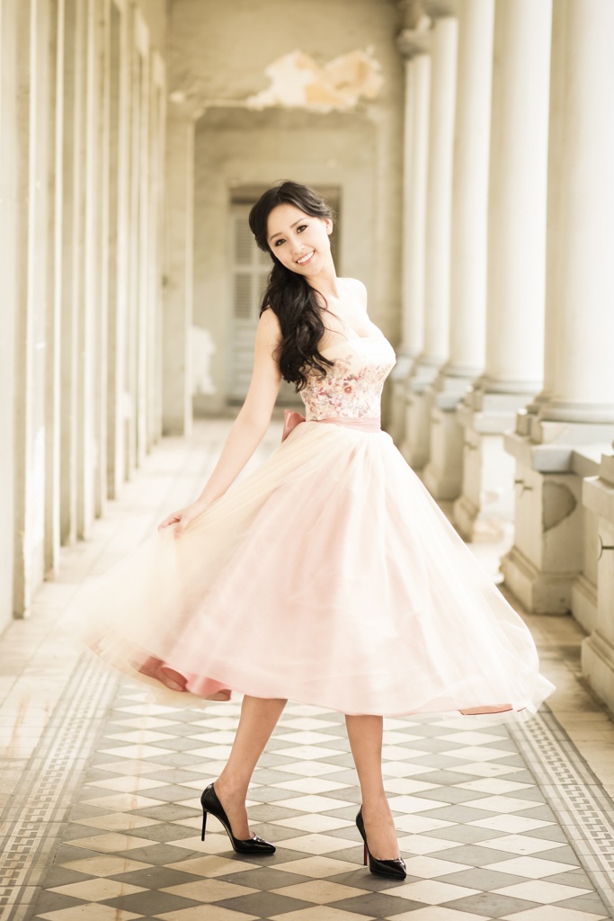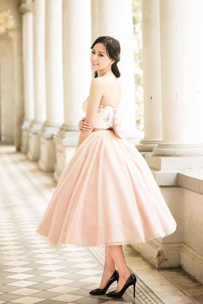 | Người đẹp tung tăng tạo dáng với phần chân váy bồng bềnh. |