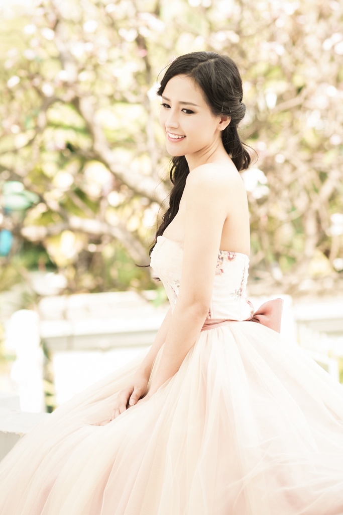 | Mái tóc đen được vấn dịu dàng cùng với tông trang điểm nhẹ giúp vẻ đẹp của hoa hậu thêm hoàn hảo.Trông cô như một nàng tiểu thư đài các, xinh đẹp. |