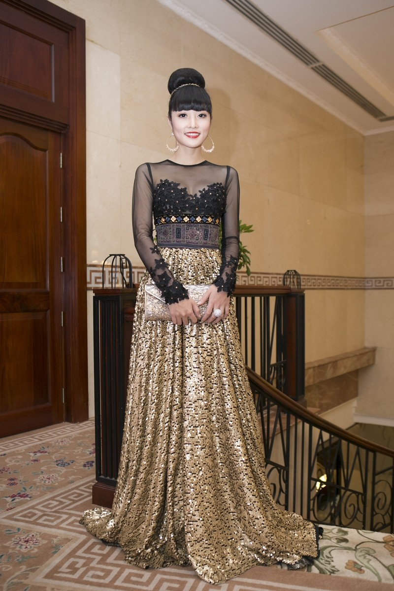 | "Hoa hậu trả vương miện" Triệu Thị Hà cũng bắt đầu tham dự các sự kiện làng giải trí. Tuy nhiên, hình ảnh của cô bị cho là quá lòe loẹt và không hợp xu hướng bởi diện bộ đầm có quá nhiều chi tiết đính kết rối mắt. Trông cô còn nặng nề hơn khi để kiểu tóc búi cao lỗi mốt. |