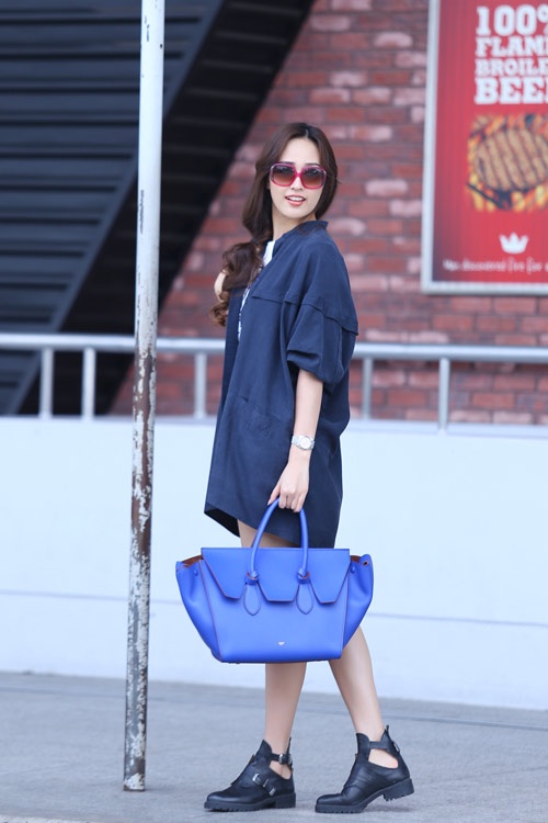 | Một hình ảnh quá đỗi bình dân của Mai Phương Thúy, mỗi khi ra đường khá "cẩu thả" với bản thân. |