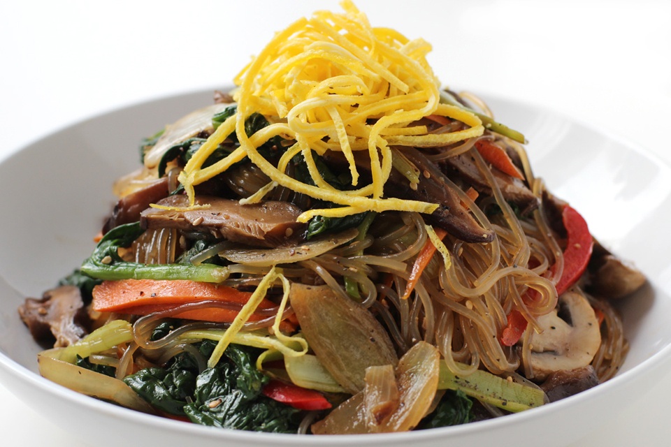 | Một số đặc sản trung thu khác của người Hàn là miến trộn japchae, bánh jeon và hoa quả. |