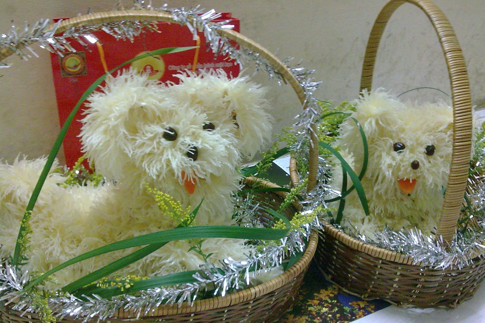 | Ngoài bánh nướng, bánh dẻo, mâm cỗ trông trăng của người Việt thường có thêm quả bưởi, làm thành hình chú chó rất khéo, quả hồng và trà xanh tao nhã. |