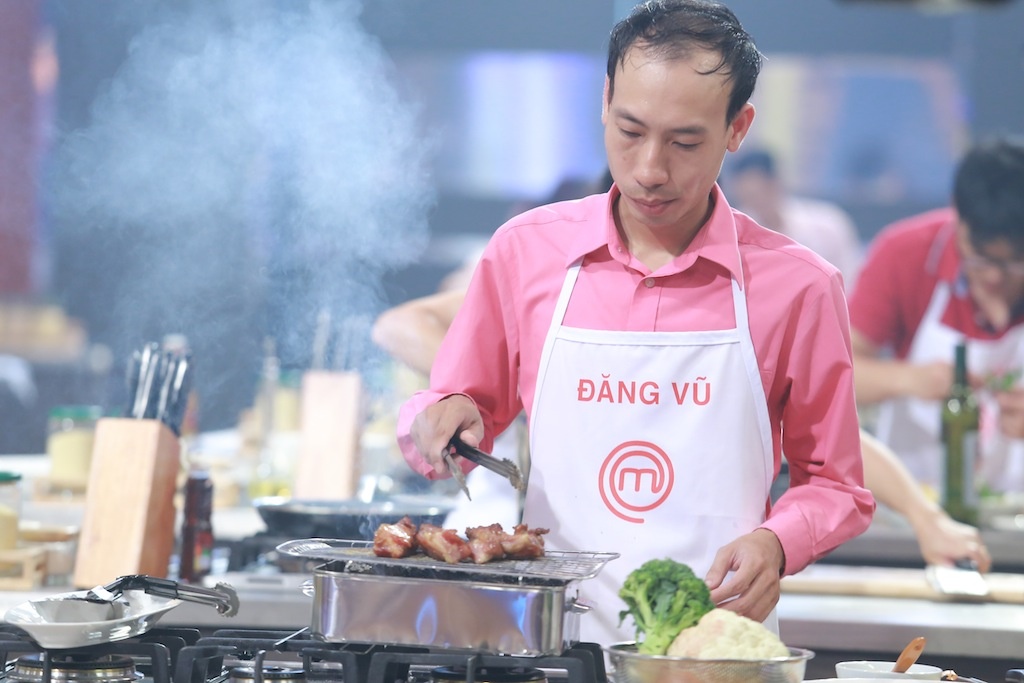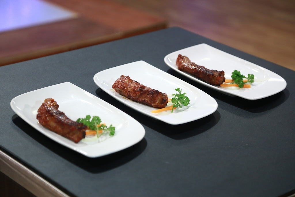 | Trong khi đó, anh chàng kế toán Đăng Vũ thuyết phục ban giám khảo bằng món Sườn nướng than hoa. |