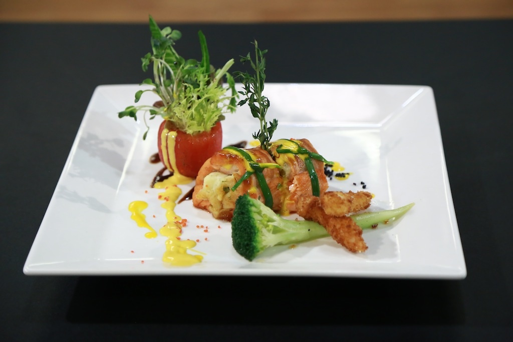 | Người cuối cùng có món ăn lọt top 3 Chiếc hộp bí mật là Thanh Cường. Anh thực hiện món Cá hồi cuộn khoai tây nghiền để thể hiện niềm yêu thích cái đẹp và cá tính đặc trưng của bản thân. |