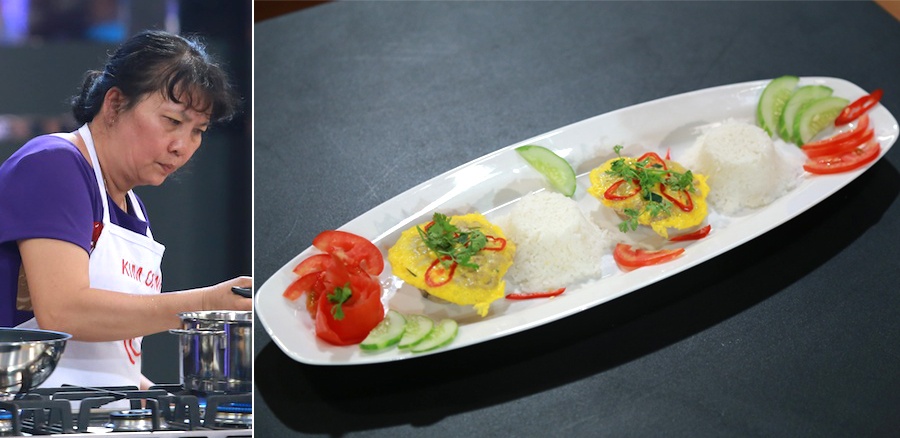 | Với món Mắm chưng thịt, cô Kim Oanh đã chứng minh lợi thế của người nội trợ giàu kinh nghiệm và bản lĩnh trong cách xử lý các nguyên liệu từ mắm ruốc đến thịt và trứng để mang đến một món ăn ngon miệng.Món ăn của cô được 2 nữ đầu bếp Tịnh Hải và Christine Hà rất yêu thích. |