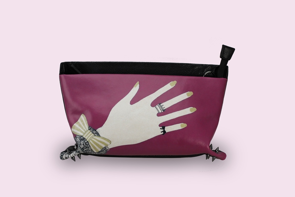 | Tương phản giữa vẻ mềm mại nữ tính của hoa hồng với phụ kiện đinh gai mạnh mẽ phần đáy túi cũng là một điểm hấp dẫn đặc biệt của những mẫu Clutch này. |