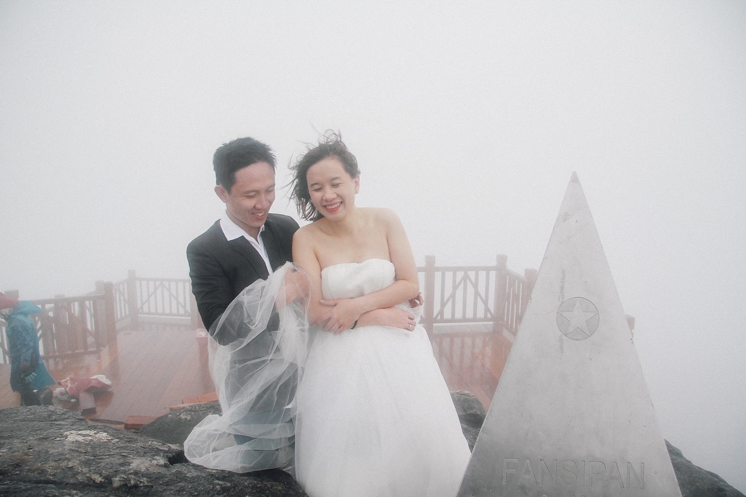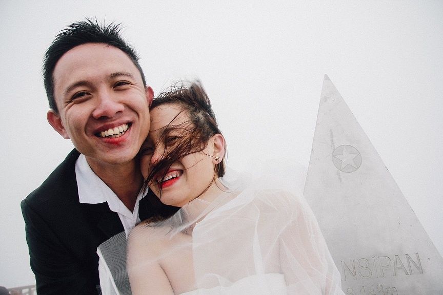 | Thanh Mai và Sơn Tùng chụp ảnh cưới trên đỉnh Fansipan. |