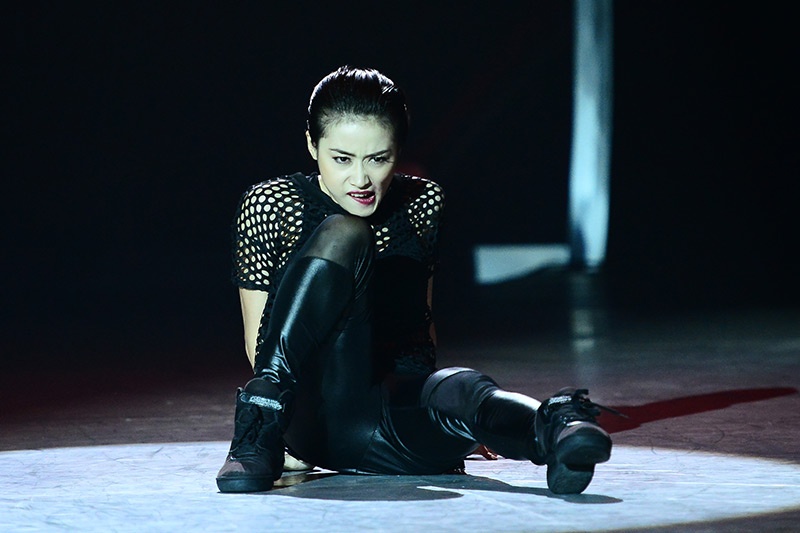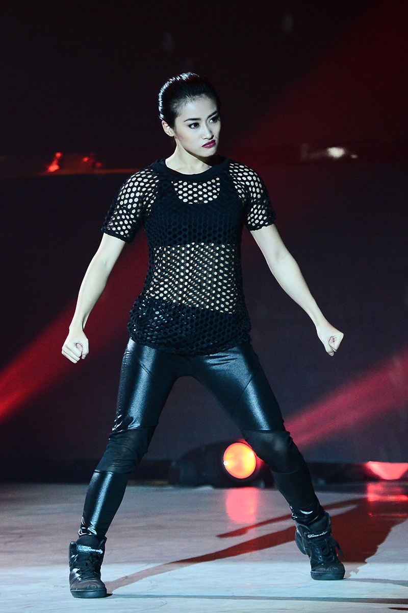 Ngọc Anh vứt bỏ vẻ mềm mại, nữ tính thường thất để phát cách đầy mạnh mẽ trong bài múa Fighter. |