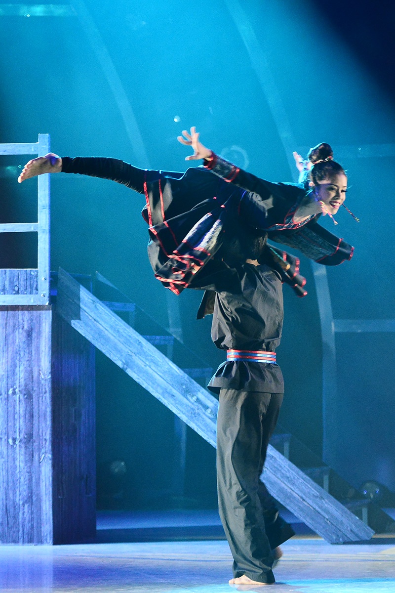 Sau bài hiphop sôi động, Đình Lộc và Lan Anh lại hóa thân thành đôi trai gái người Mông ở Sapa. Biên đạo Kiều Lê đã lấy ý tưởng từ tục bắt vợ của dân tộc miền núi phía Bắc để làm chất liệu cho bài múa dân gian đương đại. |