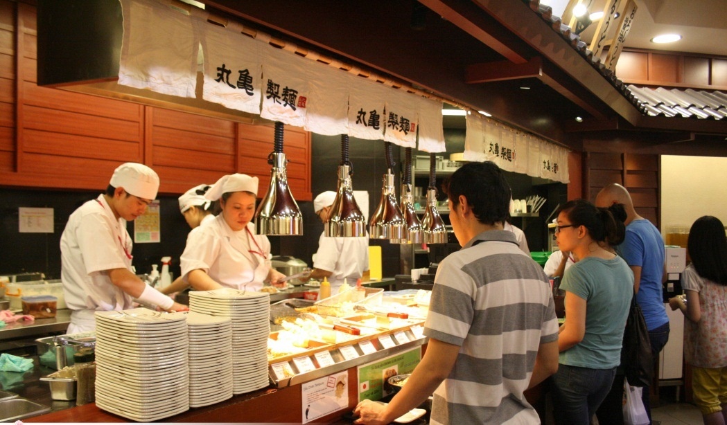 Trước hết, nói tới văn hóa Nhật, người ta thường nghĩ ngay tới việc xếp hàng. Khác hẳn với cảnh ồn ào chen lấn ở các nhà hàng khác trong lòng thành phố nhộn nhịp, đến với Marukame Udon, khi bước vào quán, dù đông hay vắng đến mấy, mọi người vẫn kiên nhẫn xếp hàng chờ đến lượt để đặt món.
