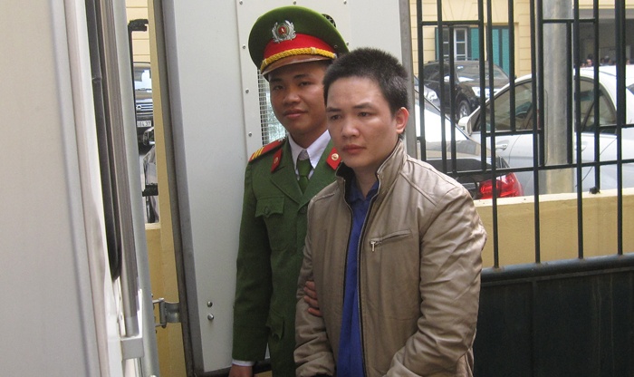| Hạnh bị dẫn giải ra xe chở phạm nhân sau phiên tòa. |