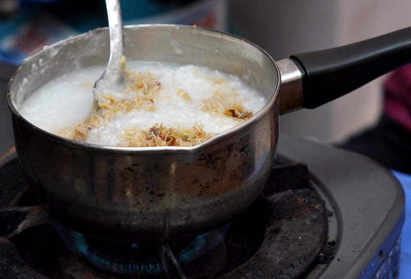 | Thi thoảng khách mới vớt được miếng cù kỳ “ra tấm ra món”, còn lại tất cả đã hòa nhuyễn vào trong cháo. |