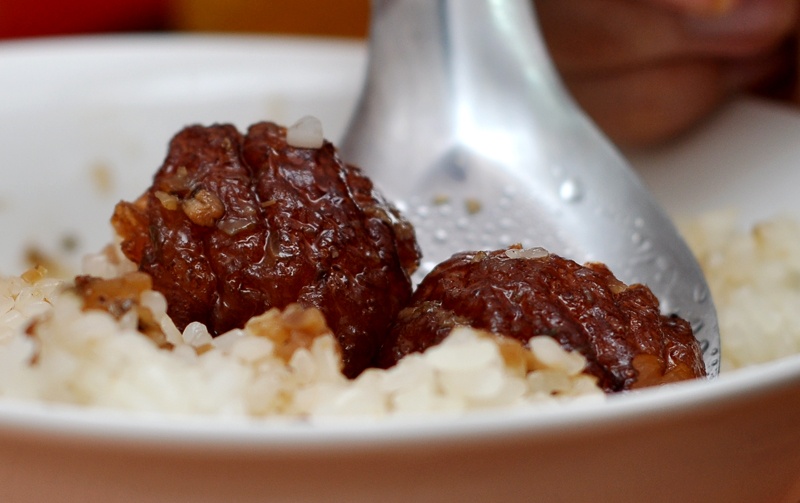 Xôi khau nhục thoạt nhìn không khác xôi thịt ba chỉ kho.