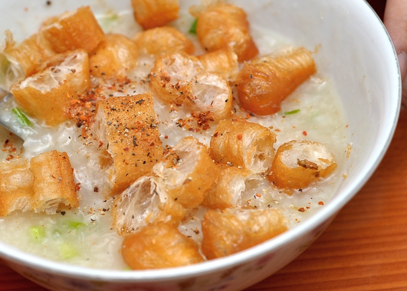 Cháo cù kỳ là món cháo trắng thông thường kết hợp với thịt cù kỳ đã xé nhỏ xào lên.