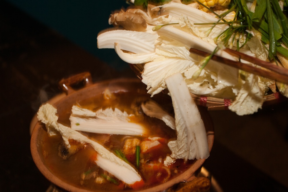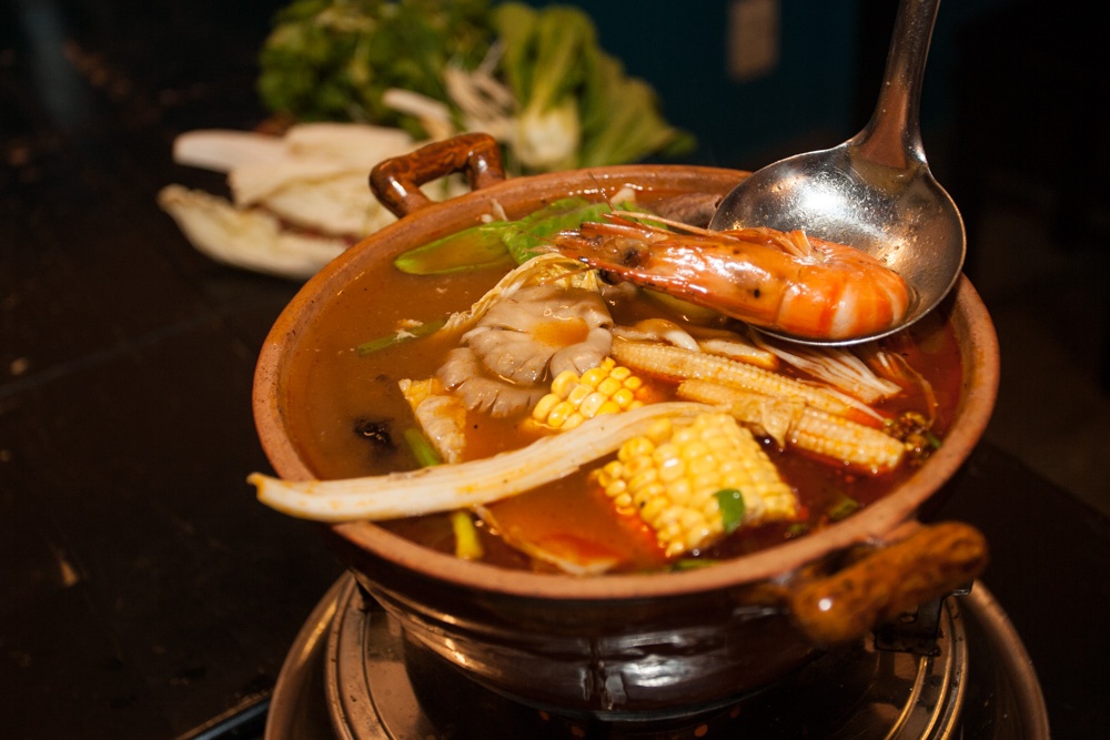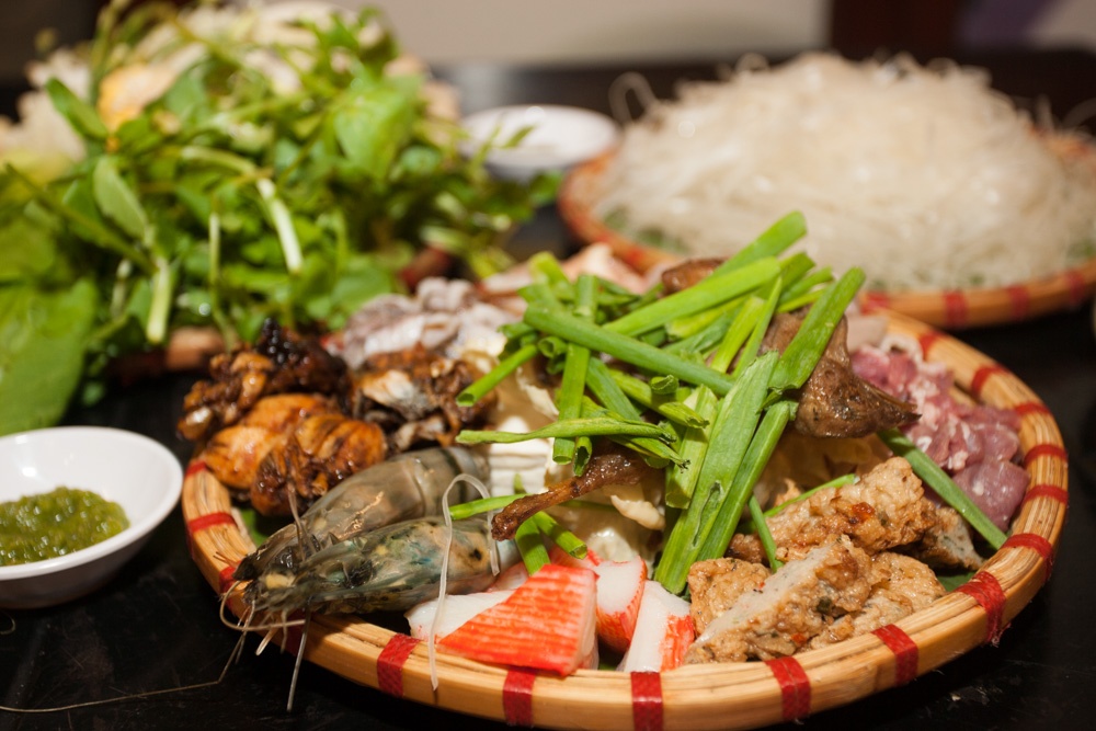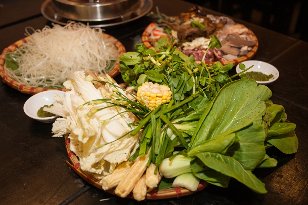 Kích thước nồi lẩu lại có hạn nên để thưởng thức loại lẩu này, bạn chỉ còn cách cho mỗi thứ một ít. Cái lợi của phương án này là không chỉ giúp bạn “bơi” trong rau đến no mới được thưởng thức thịt (vì bị chìm bên dưới) mà còn giúp bạn cảm nhận rõ hơn các loại thịt. Như thịt gà ta dai chắc, hải sản tươi ngọt, lòng thập cẩm dai giòn. Đã miệng nhất phải kể đến chim cút được ướp đủ thời gian, chiên đủ lửa hay thịt ếch, săn chắc, đậm đà.