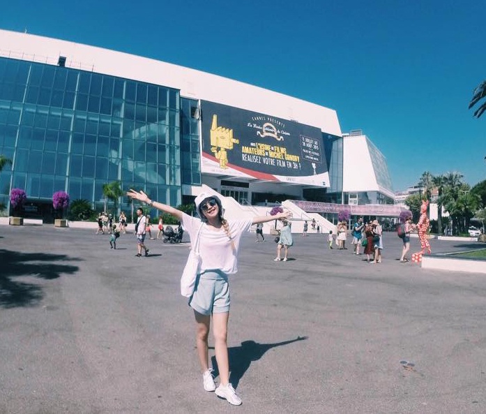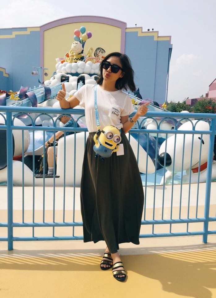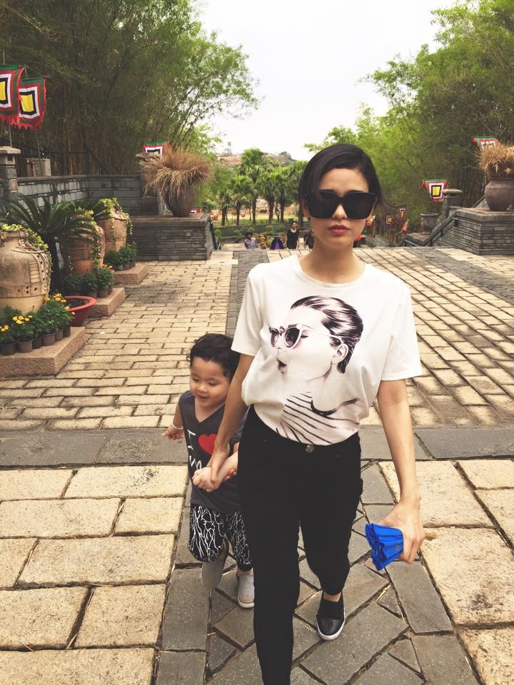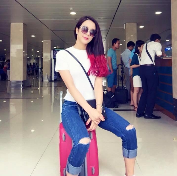 | Diệp Lâm Anh đi du lịch với mốt áo thun, quần jeans năng động. |
