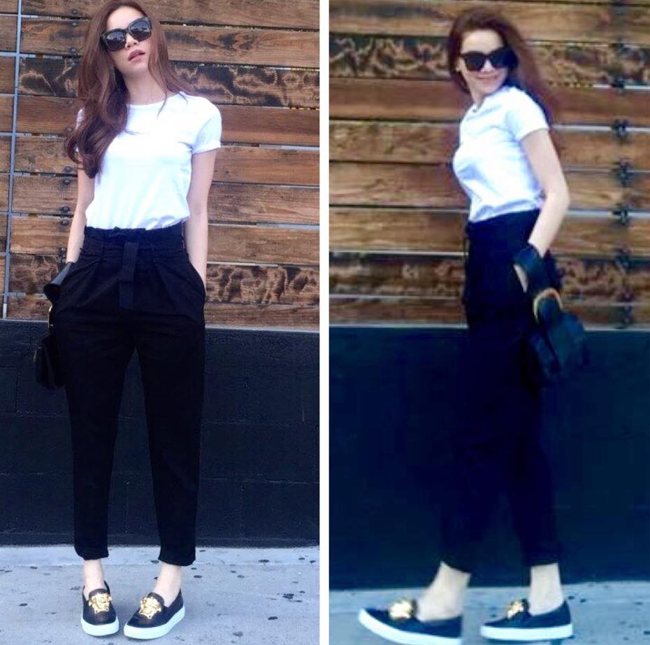 | Hà Hồ khoe vóc dáng thon thả với cây đen - trắng trẻ trung. |