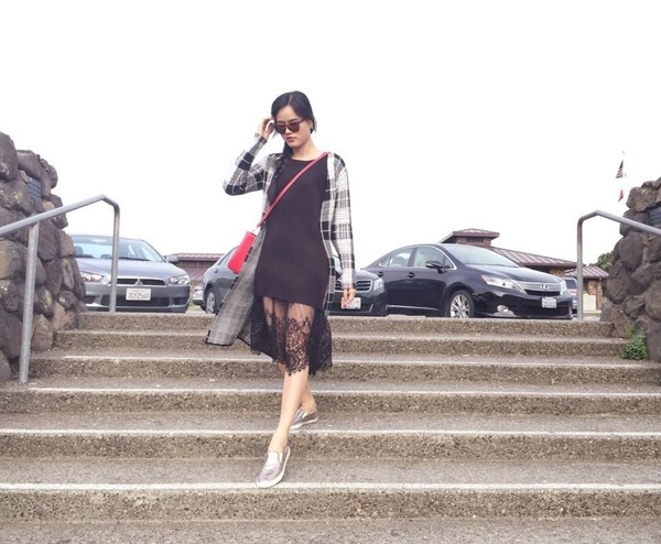 | Đôi slip-on có họa tiết kẻ này được Minh Hằng mix màu rất trẻ trung và năng động. |