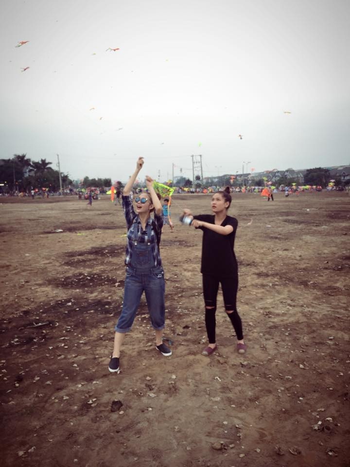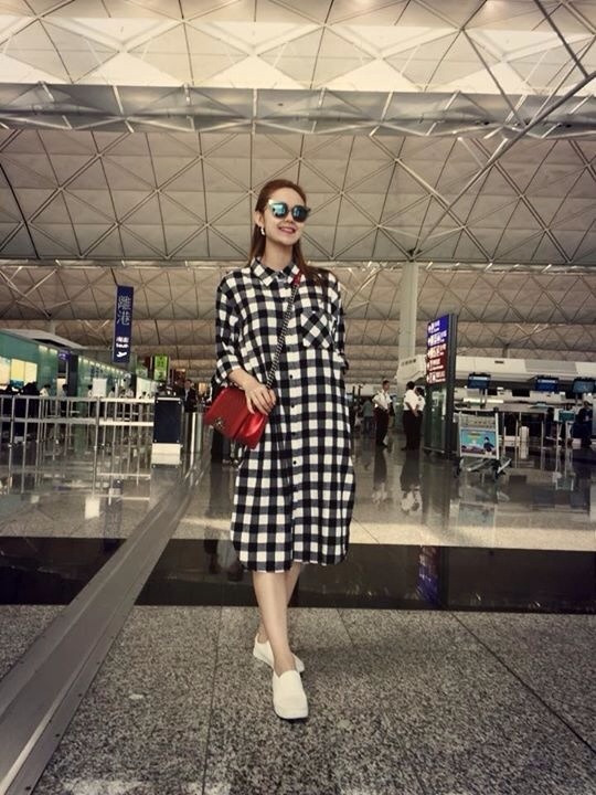 | Hình ảnh Minh Hằng trẻ trung với quần yếm, áo sơ mi kẻ và giày slip-on. |