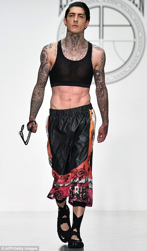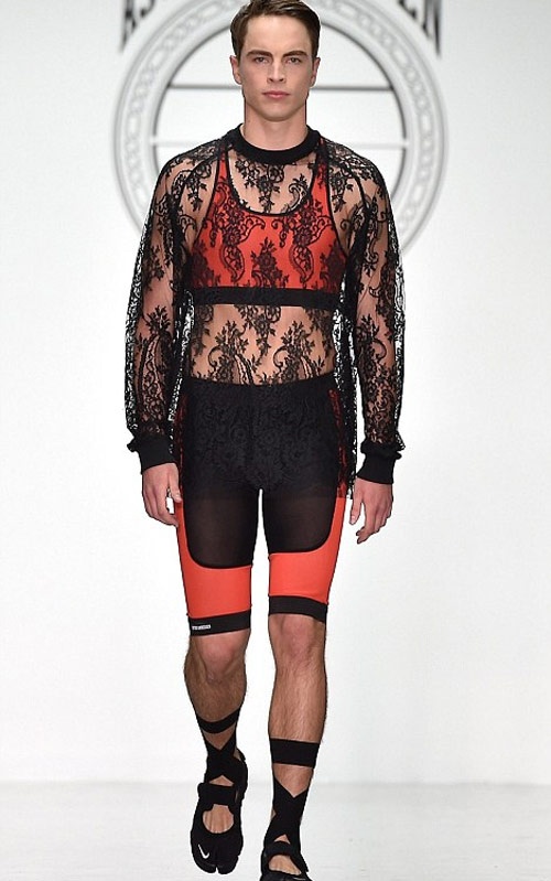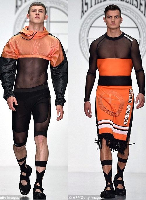 Trên sàn diễn của "London Collection: Men" tại London, Anh, nhà thiết kế Astrid Andersen gây bất ngờ cho khán giả khi tung lên sàn diễn những người mẫu nam mặc những chiếc váy ôm sát nhiều màu bằng thun và lụa. Không chỉ thế Astrid Andersen còn khiến các chàng trai của mình trông điệu đà chẳng kém gì phái nữ khi cho họ diễn những chiếc crop top (áo ngắn), quần bó chẽn và quần lụa sặc sỡ.