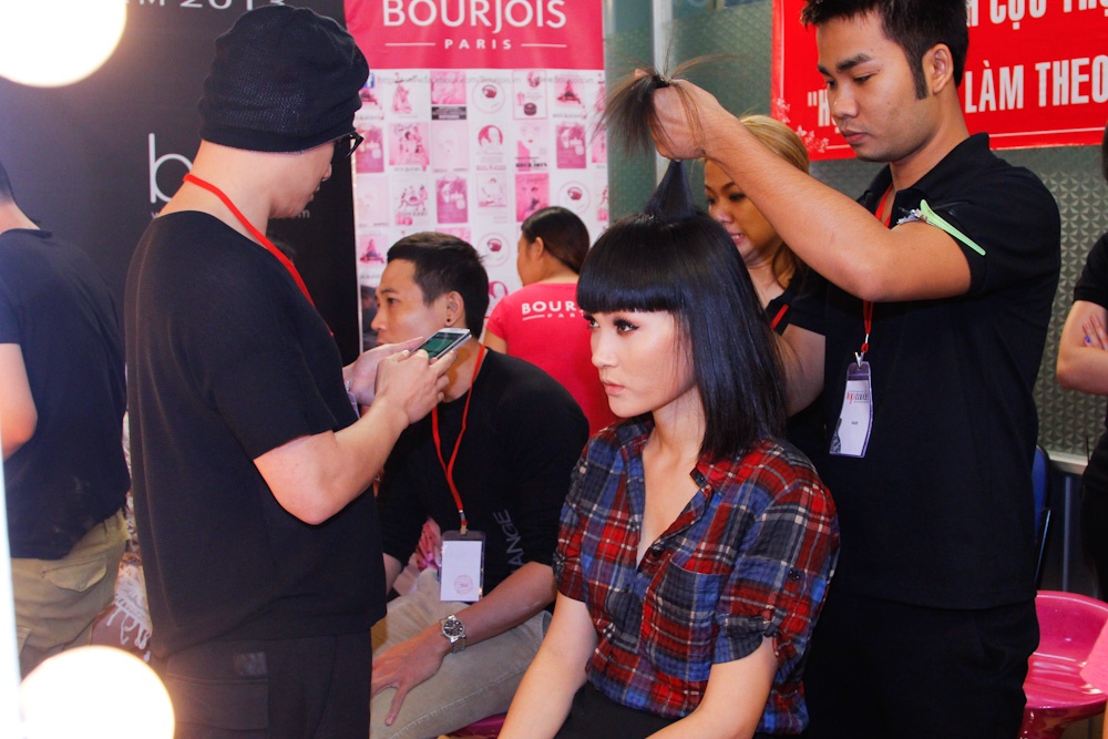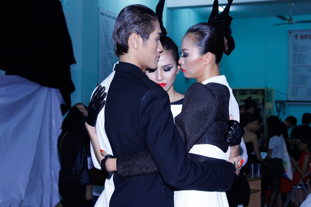 Đằng sau sân khấu rực rỡ ánh đèn của đêm chung kết, các thí sinh mùa 4 tất bật công tác chuẩn bị trang điểm, chỉn chu trang phục trước khi lên sàn diễn.
