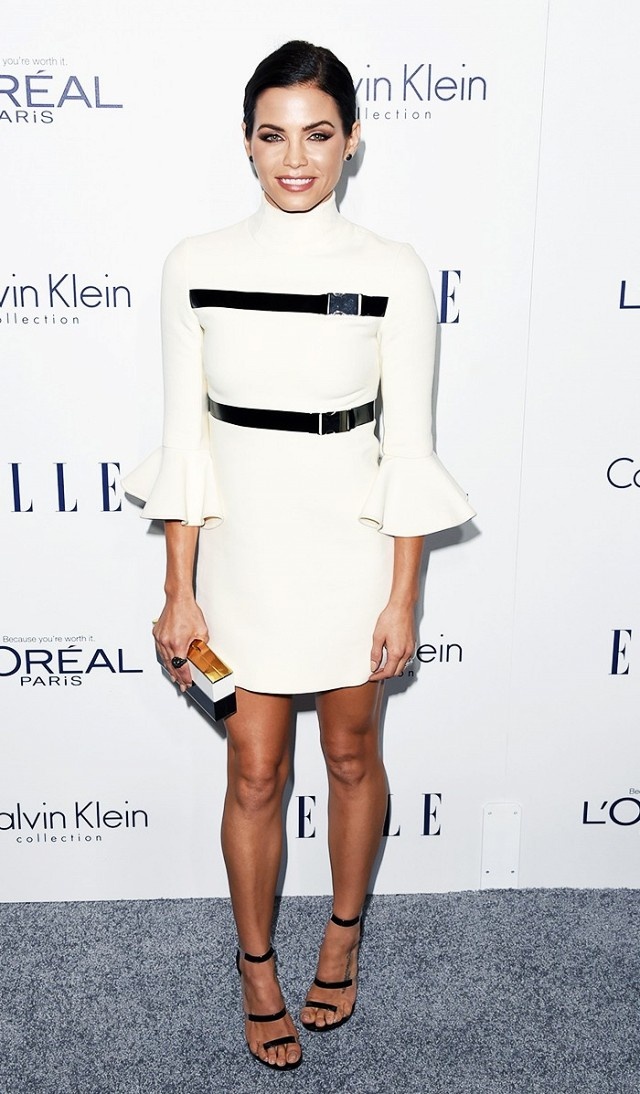 | Jenna Dewan và mẫu sandals phối cùng váy đen trắng rất hợp thời trang. |