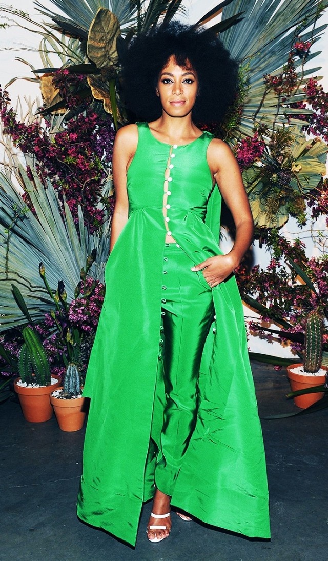 | Solange Knowles chọn màu trắng khi mix kèm kiểu trang phục màu neon rực rỡ. |