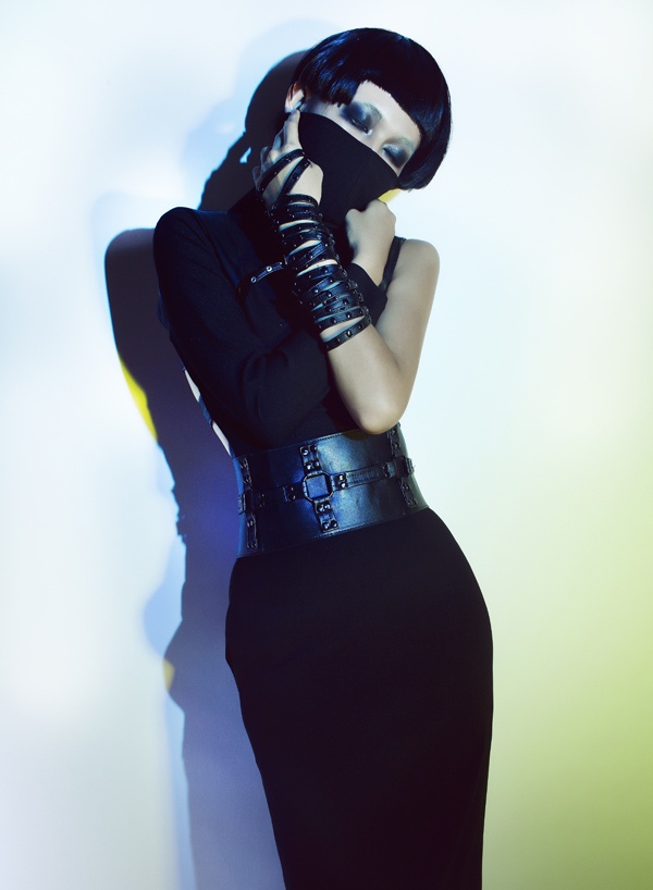 Quán quân Vietnam's Next Top Model 2013 che nửa mặt, tạo dáng lạnh lùng trong loạt ảnh thời trang mới.
