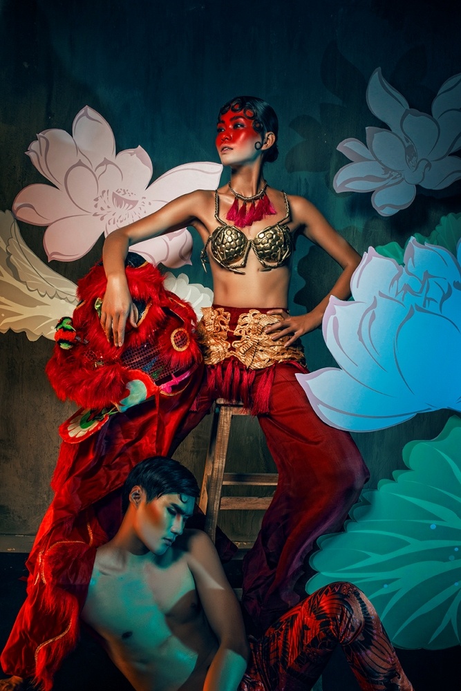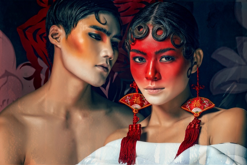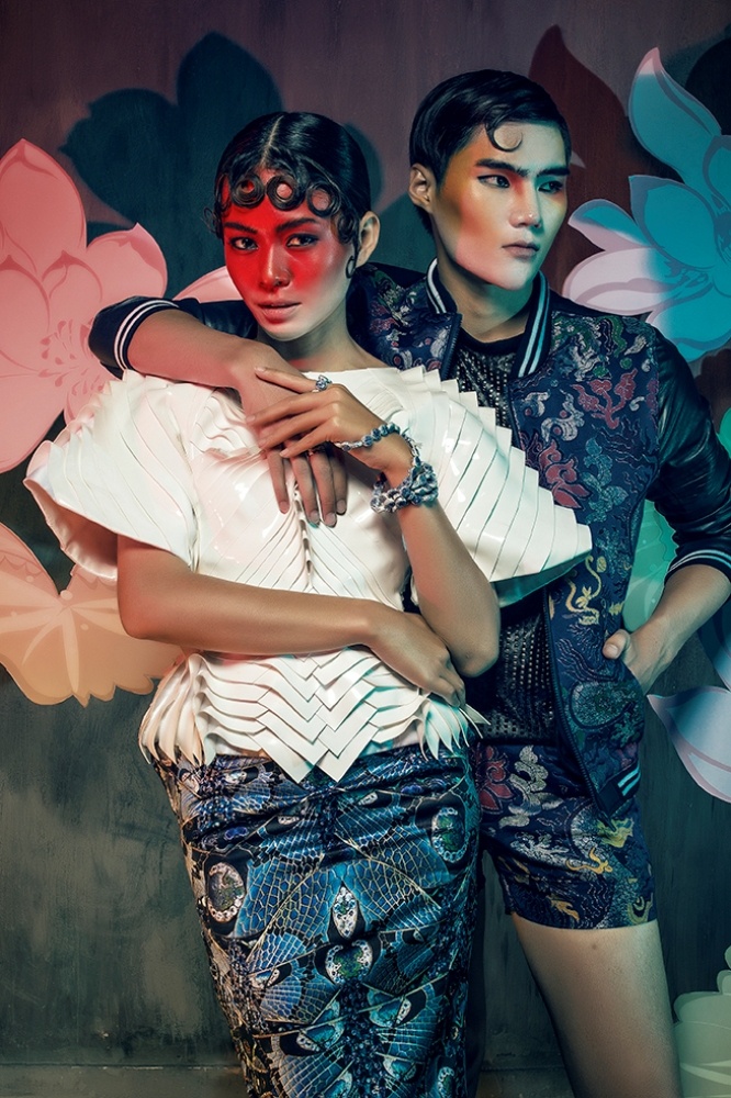 Hai quán quân Vietnam's Next Top Model Quang Hùng và Mâu Thủy ăn vận cá tính trong bộ ảnh lấy ý tưởng từ nghệ thuật tuồng cổ.