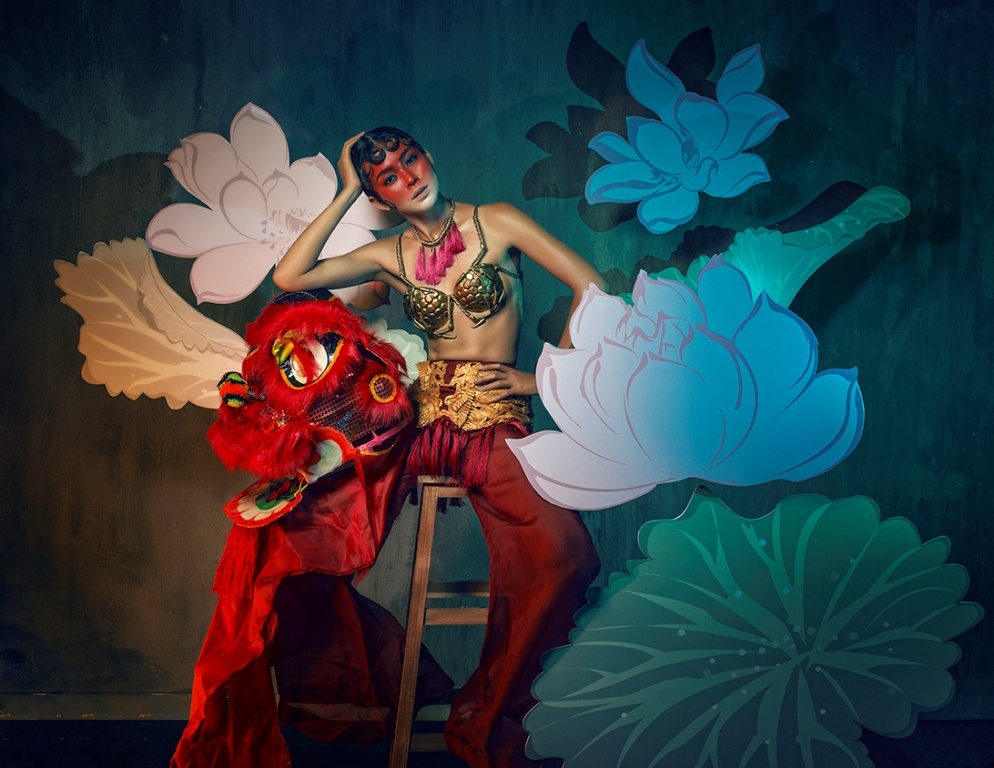 | Cùng xuất hiện trong bộ ảnh thời trang mang đậm dấu ấn văn hóa, 2 quán quân Quang Hùng và Mâu Thanh Thủy chứng tỏ năng lực diễn xuất phù hợp với đặc trưng ngữ cảnh. Để bộ ảnh thêm phần thú vị, Mâu Thủy không ngại diện áo bra kim loại cứng, tạo dáng cá tính cùng bạn diễn. |