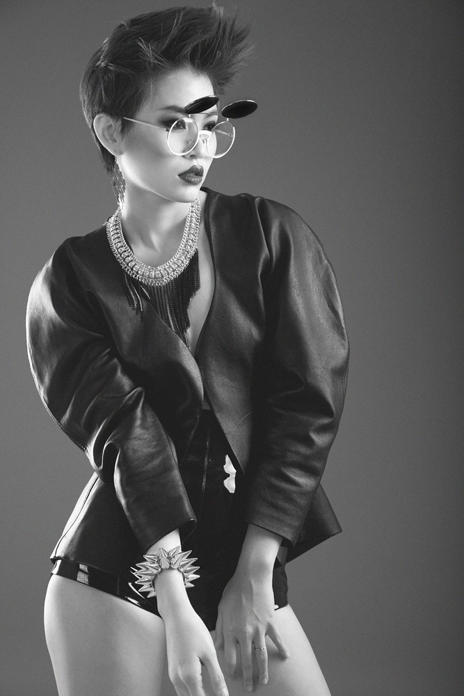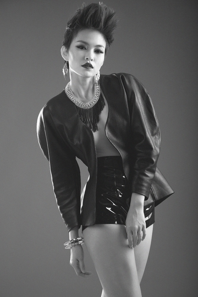 | Bên cạnh sự lạnh lùng cá tính, Mâu Thanh Thủy còn thể hiện vẻ đẹp gợi cảm, quyến rũ bằng trang phục hợp trào lưu. |