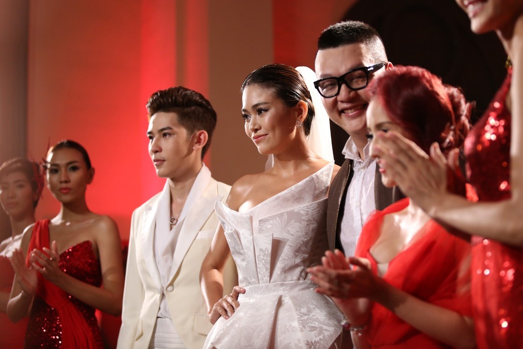 Kết thúc show diễn, Mâu Thanh Thủy và Khánh Thi xuất hiện cùnng NTK Tăng Thành Công chào khán giả.