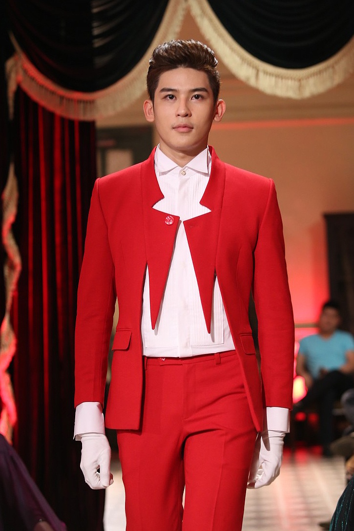 Người mẫu Minh Trung lịch lãm với gam màu đỏ nổi bật.