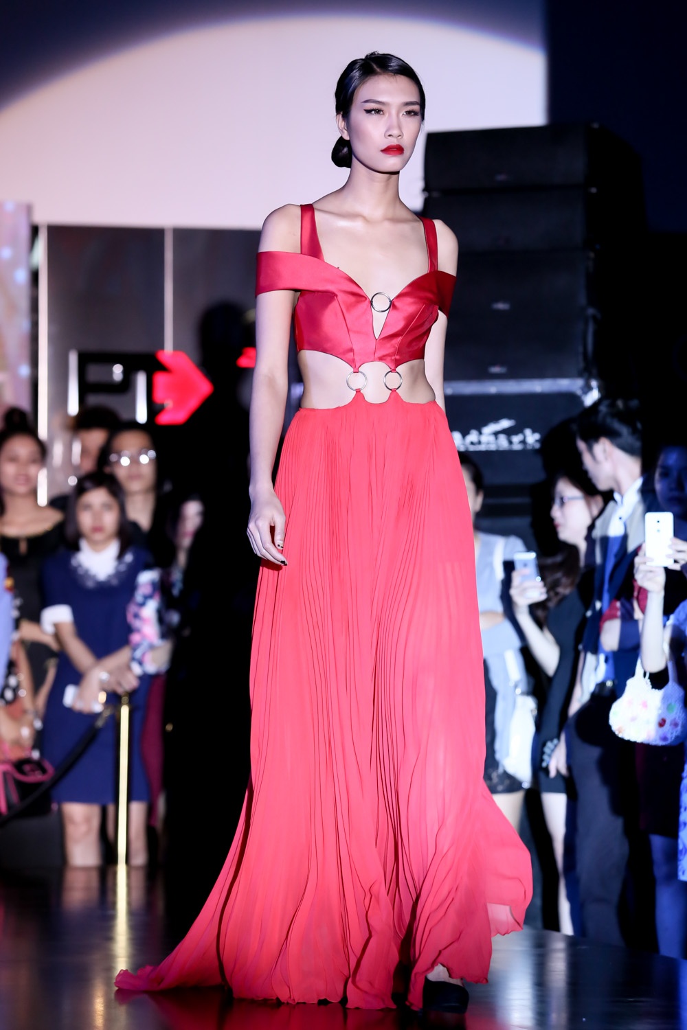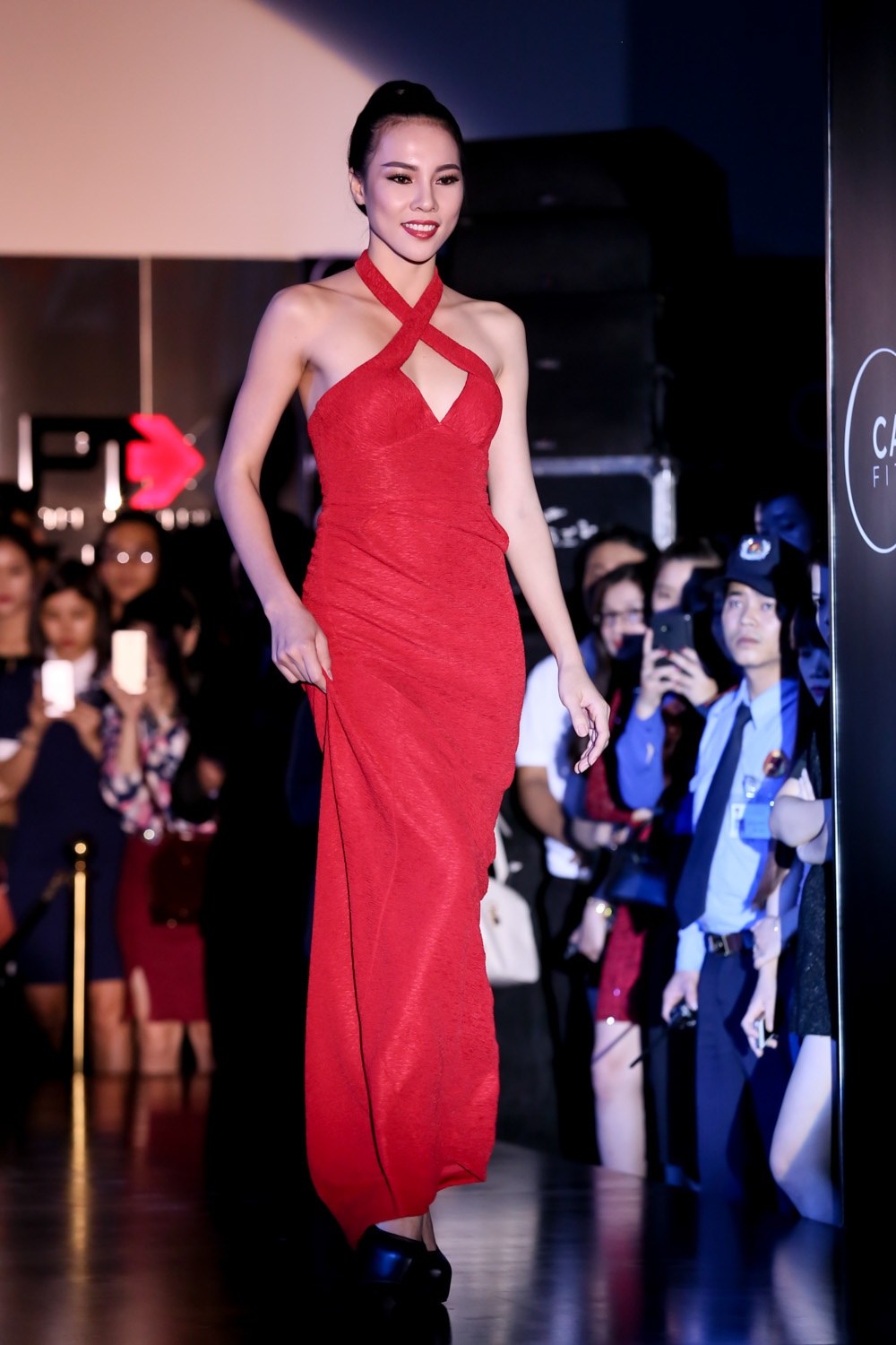 | Thanh Thuỷ cuốn hút trên sàn diễn với tông đỏ. |