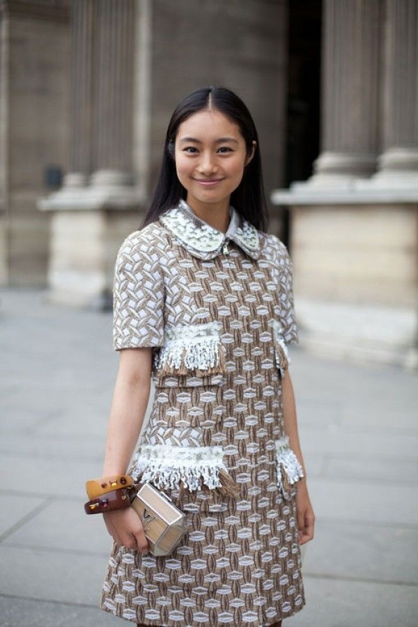 | Với các cô gái ưa vẻ nữ tính thì chất liệu vải tweed trên nền trắng rất được ưa thích. |