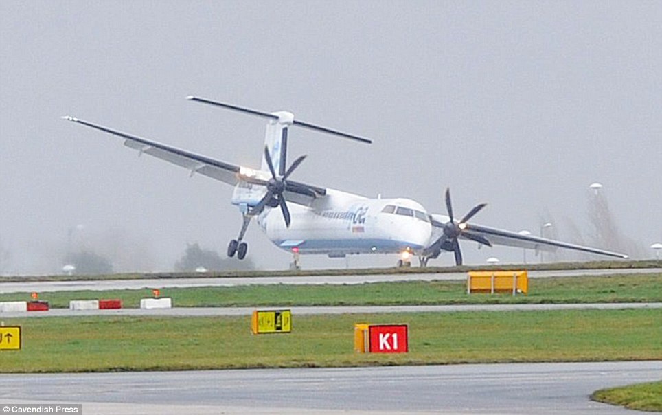 Sức gió lên tới 160 - 170 km/h khiến chiếc máy bay chở khách chao đảo khi cố gắng đáp xuống sân bay Manchester. Ảnh: Cavedish Press. |