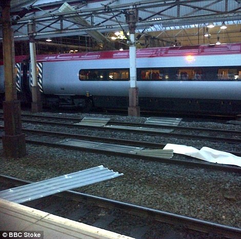 Nhà ga Euston tiêu điều vì bão. Các nhà điều hành phải tạm ngưng nhiều chuyến tàu vì gió mạnh thổi chướng ngại vật lên đường sắt, phá hủy mái các sân ga, gây mất an toàn cho đoàn tàu và hành khách. Ảnh: BBC. |