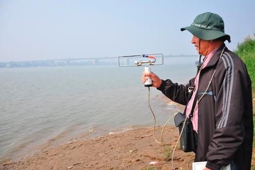 Ông Vũ Văn Bằng (Hội Liên hiệp các nhà khoa học và Kỹ thuật Việt Nam cùng ông Phạm Đức Quang (chú ruột nạn nhân) đi tìm kiếm trên cầu Thanh Trì. |