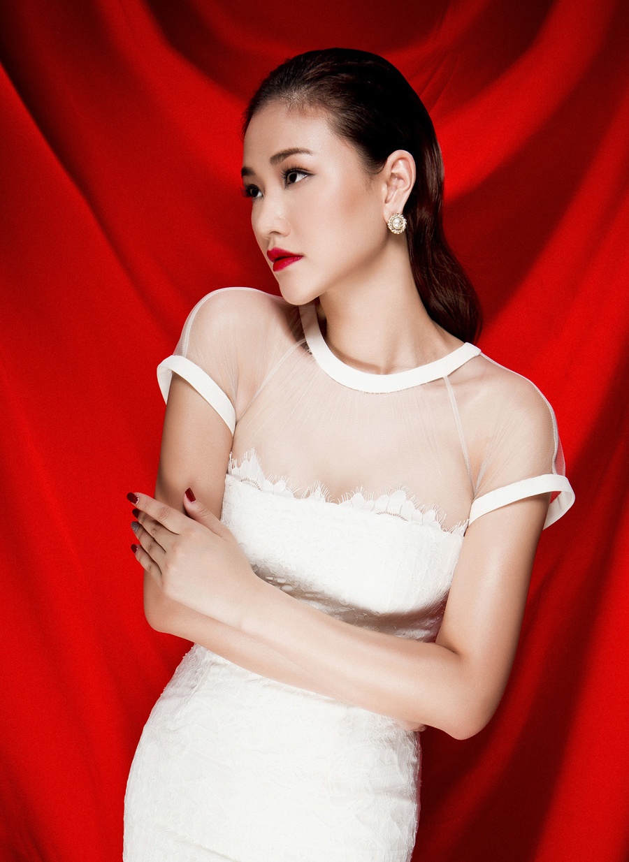 | Ở khung ảnh tiếp theo, giọng ca Anh với em là một diện đầm gam trắng trong trẻo, tinh khiết. Thiết kế ôm dáng có chất liệu voan mỏng, có khoảng hở cuốn hút ở thân áo. |