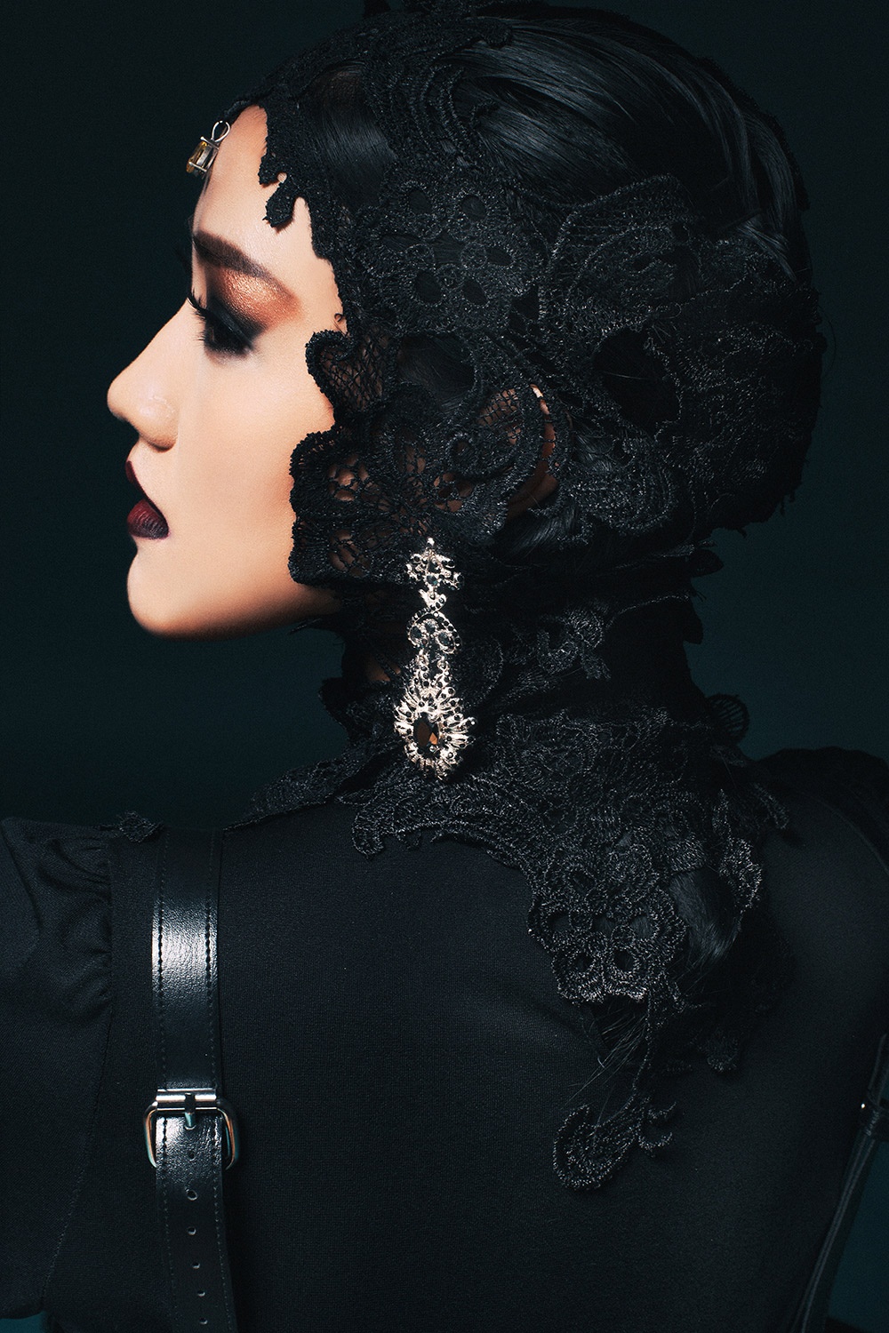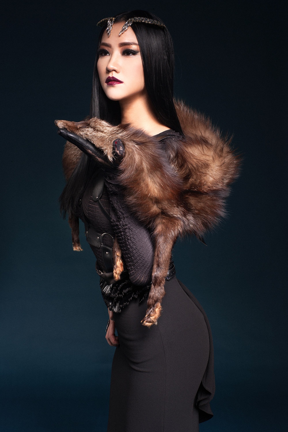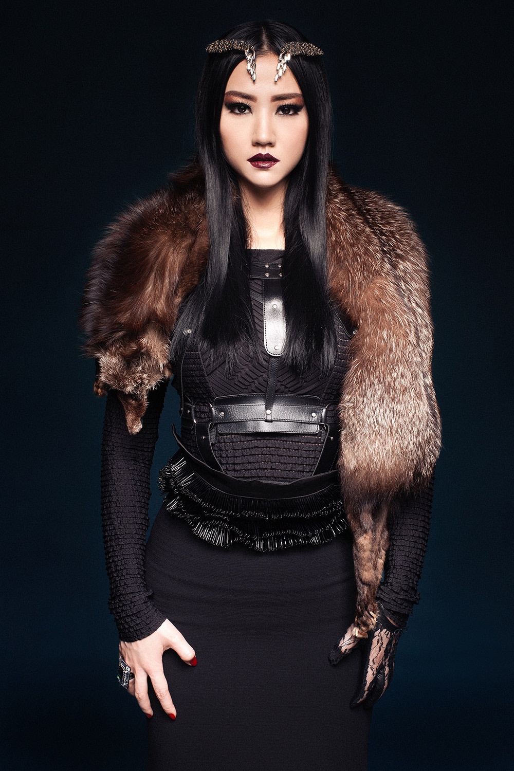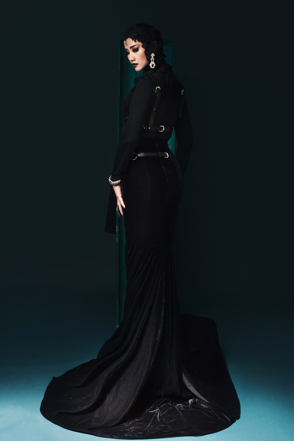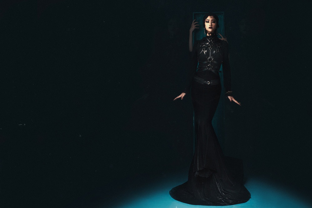 | Cách trang điểm ấn tượng cùng trang phục màu đen tạo cho bộ ảnh sự huyền bí, quyến rũ. |