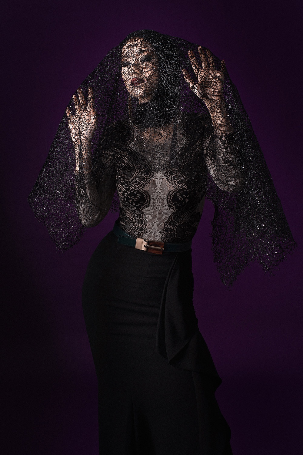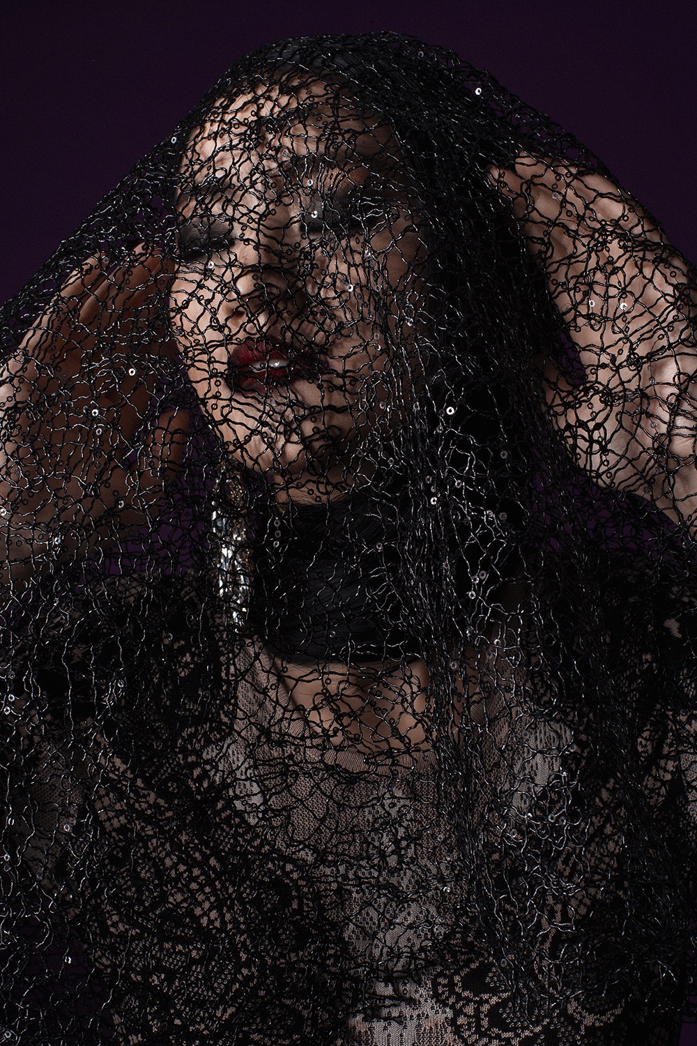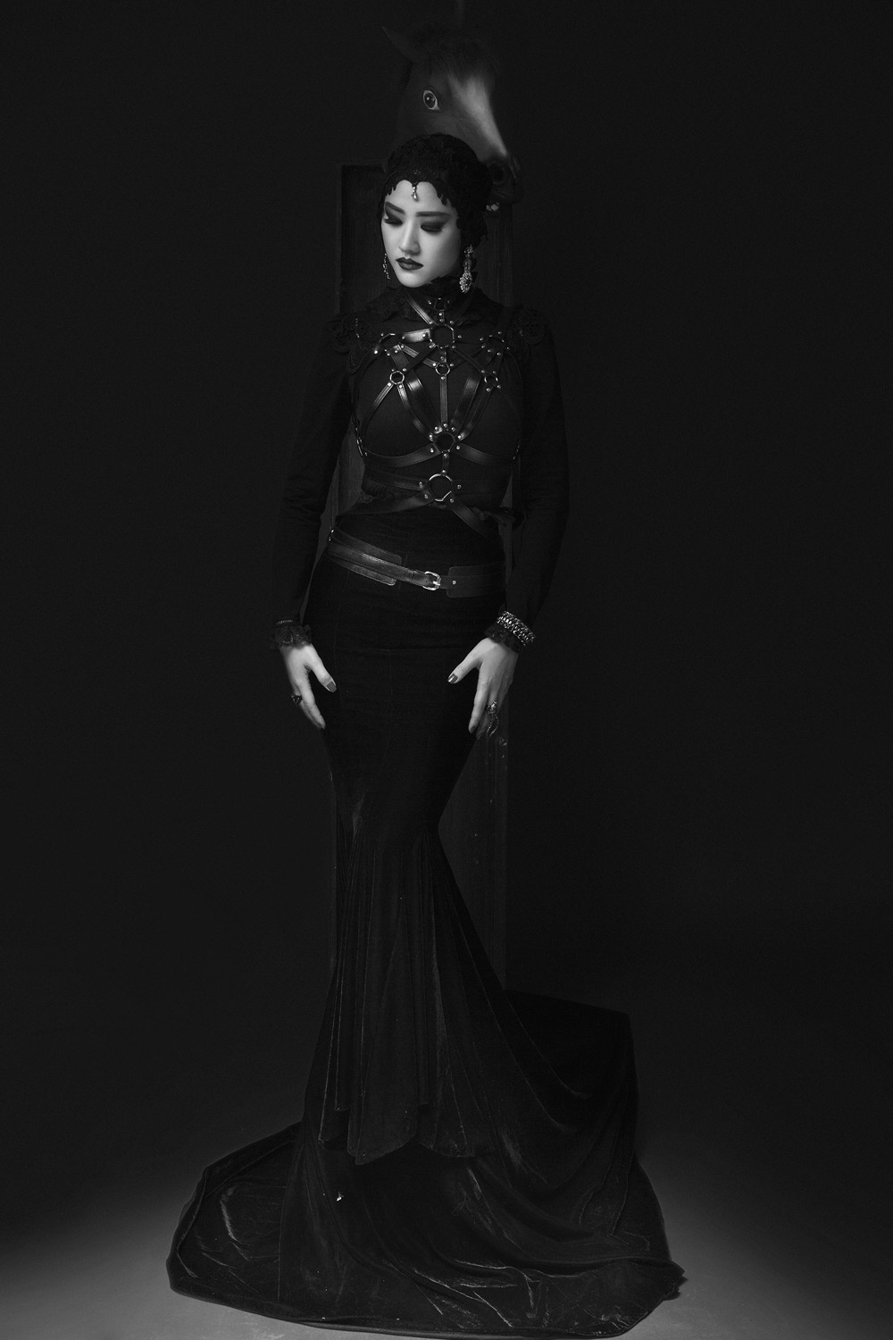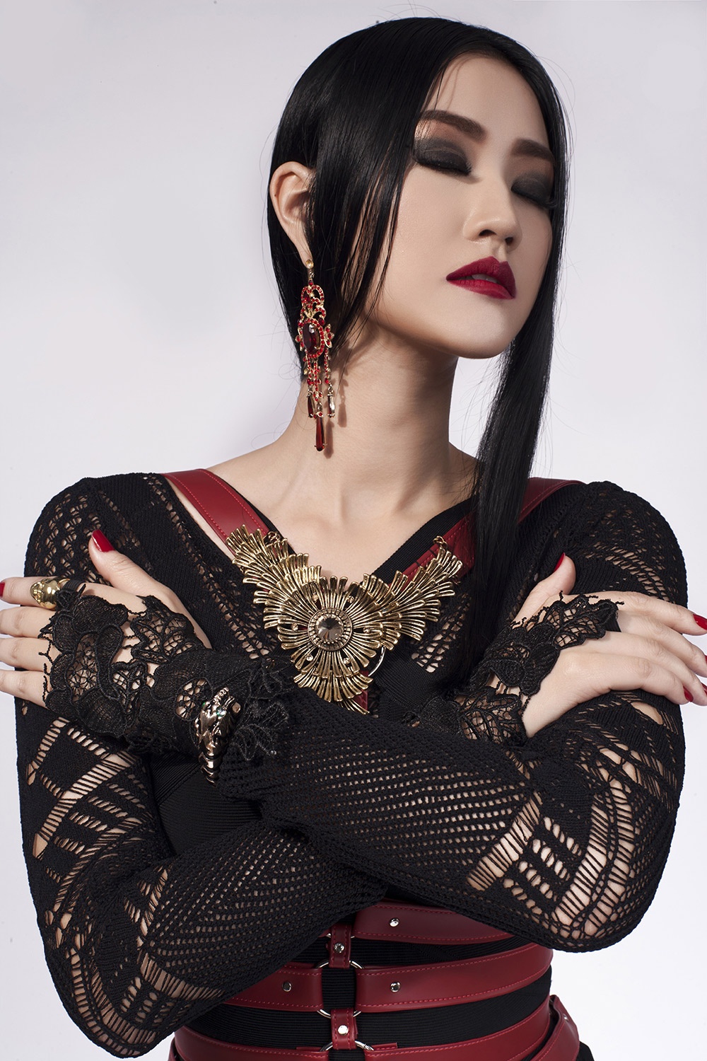 | Cách trang điểm ấn tượng cùng trang phục màu đen tạo cho bộ ảnh sự huyền bí, quyến rũ. |