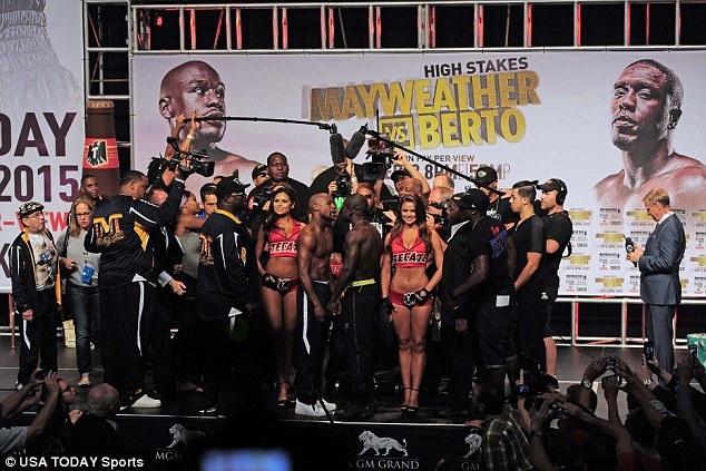 | Tại buổi kiểm tra cân nặng, Floyd Mayweather cho biết: "Berto là đối thủ khó đánh bại. Anh ấy có tỷ lệ giành chiến thắng knock-out cao (23). Đây sẽ là trận đấu lớn". |
