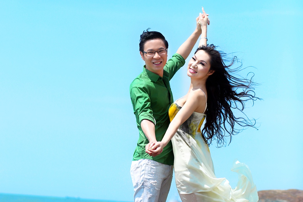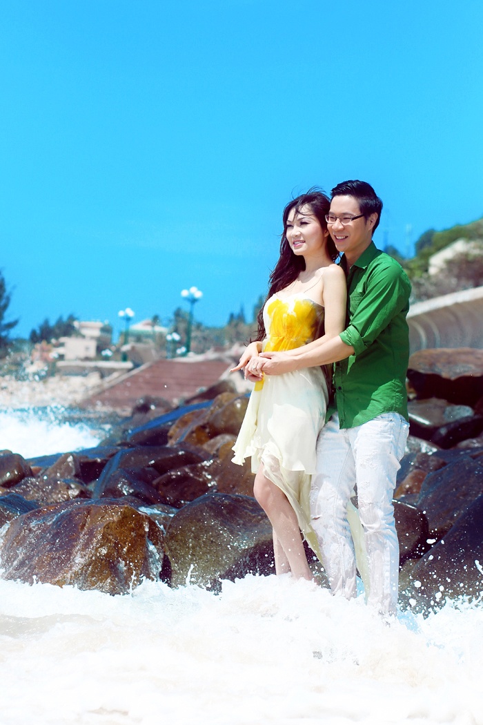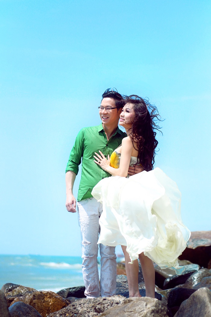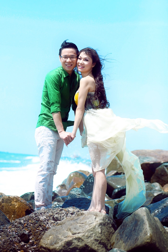 | Trong bộ hình mới, MC Anh Quân và ca sĩ hải ngoại Kavie Trần nắm tay nhau tình tứ, khoe những khoảnh khắc hạnh phúc trên biển. |