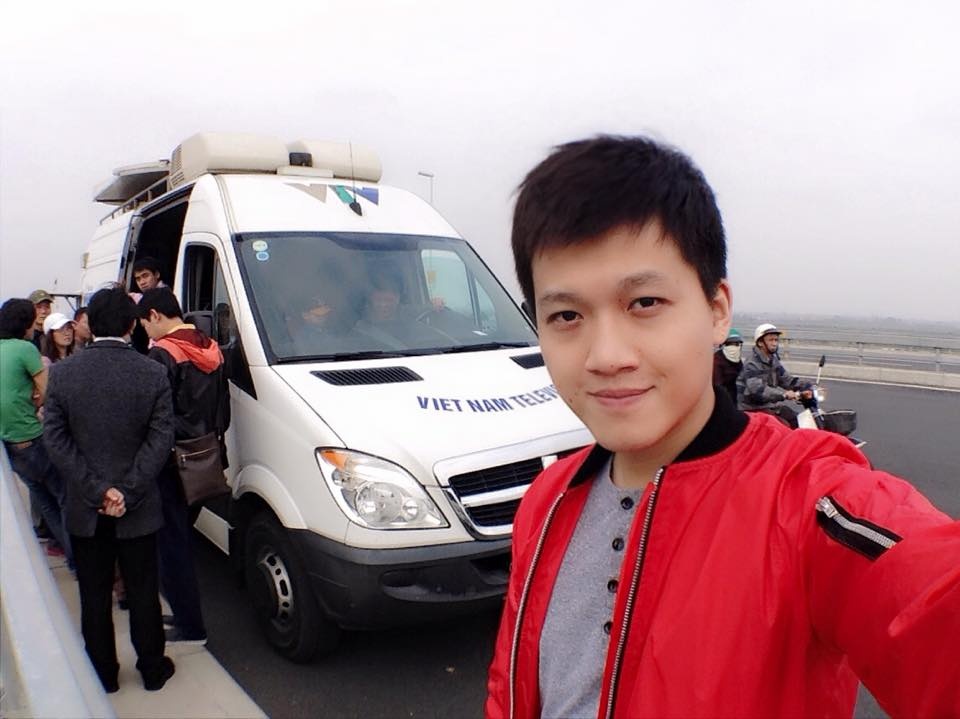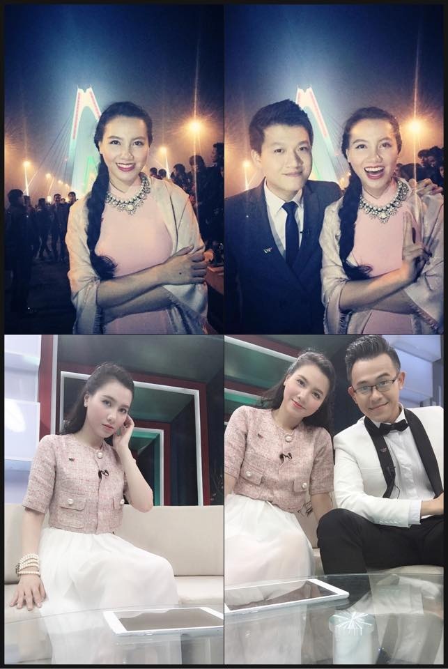 | Trước đó, MC của Cà phê sáng cũng kịp "check in" khi chuẩn bị cho buổi cầu truyền hình pháo hoa trực tiếp từ cầu Nhật Tân. |