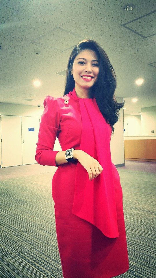 | BTV Ngọc Trinh: MC xinh đẹp chọn sắc đỏ tươi thắm cho ngày đầu năm mới. Cô chúc mọi người năm mới lúc nào cũng vui tươi, rực rỡ như hoa, hạnh phúc, may mắn và cầu gì được nấy. |