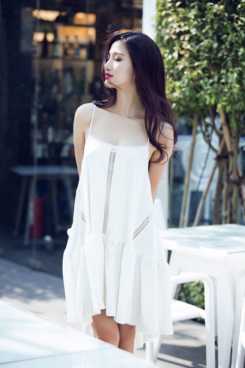 | Chiếc đầm 2 dây, dáng suông như váy ngủ đang là xu hướng được nhiều mỹ nhân Việt chưng diện mỗi khi xuống phố. Sở hữu vóc dáng cao, mảnh mai, Mỹ Linh tự tin khi bắt kịp xu thế này. |
