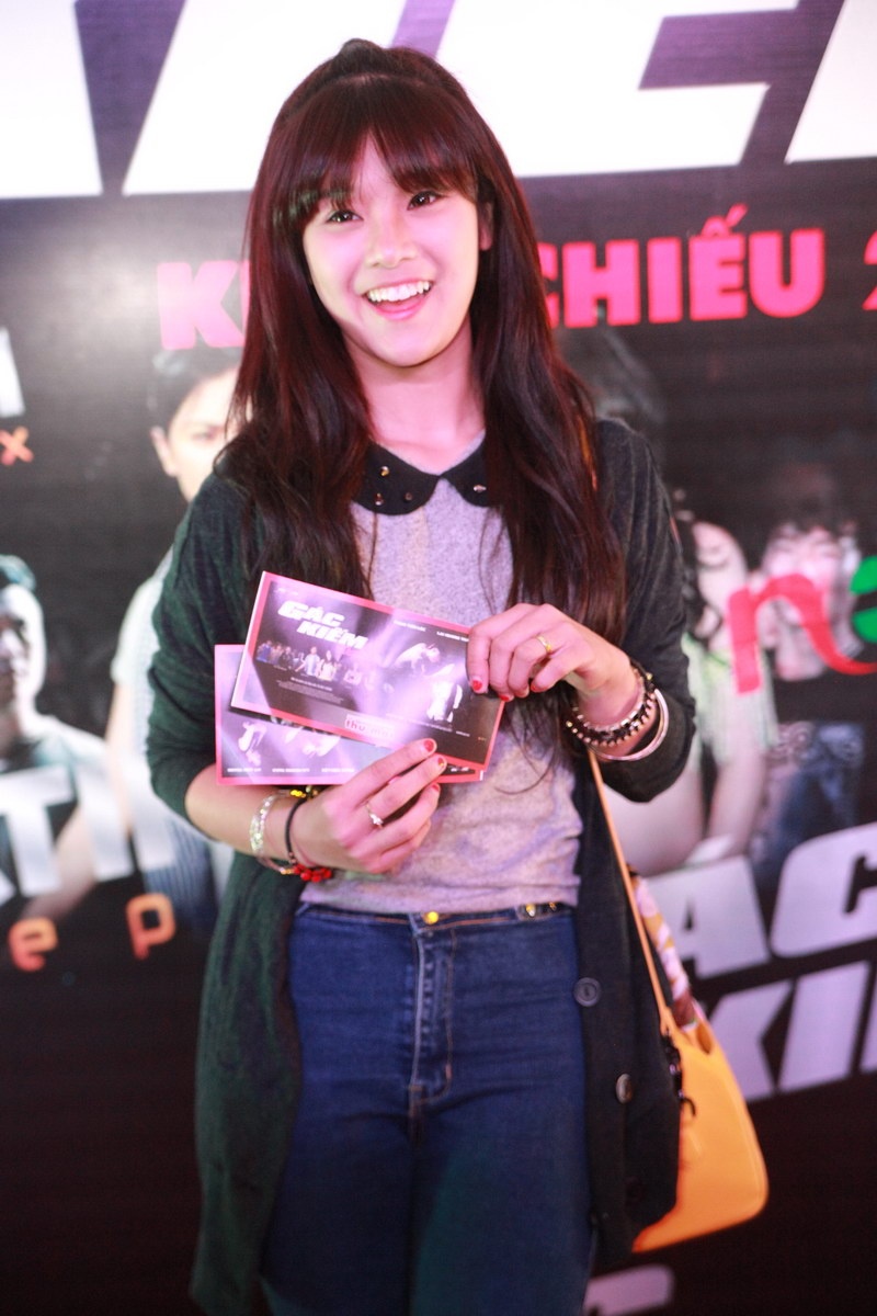 | Hot girl Hoàng Yến Chibi ăn vận đơn giản với quần jeans và áo len mỏng khi tham gia sự kiện công chiếu phim mới. |