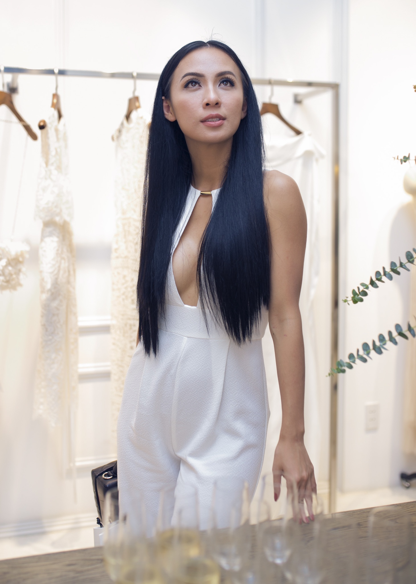 | Lan Khuê gắn bó với Lâm Gia Khang từ những ngày đầu nhà thiết kế trẻ gia nhập làng mốt Việt. Đến dự tiệc, Hoa khôi Áo dài duyên dáng trong bộ đầm sắc trắng sang trọng. |