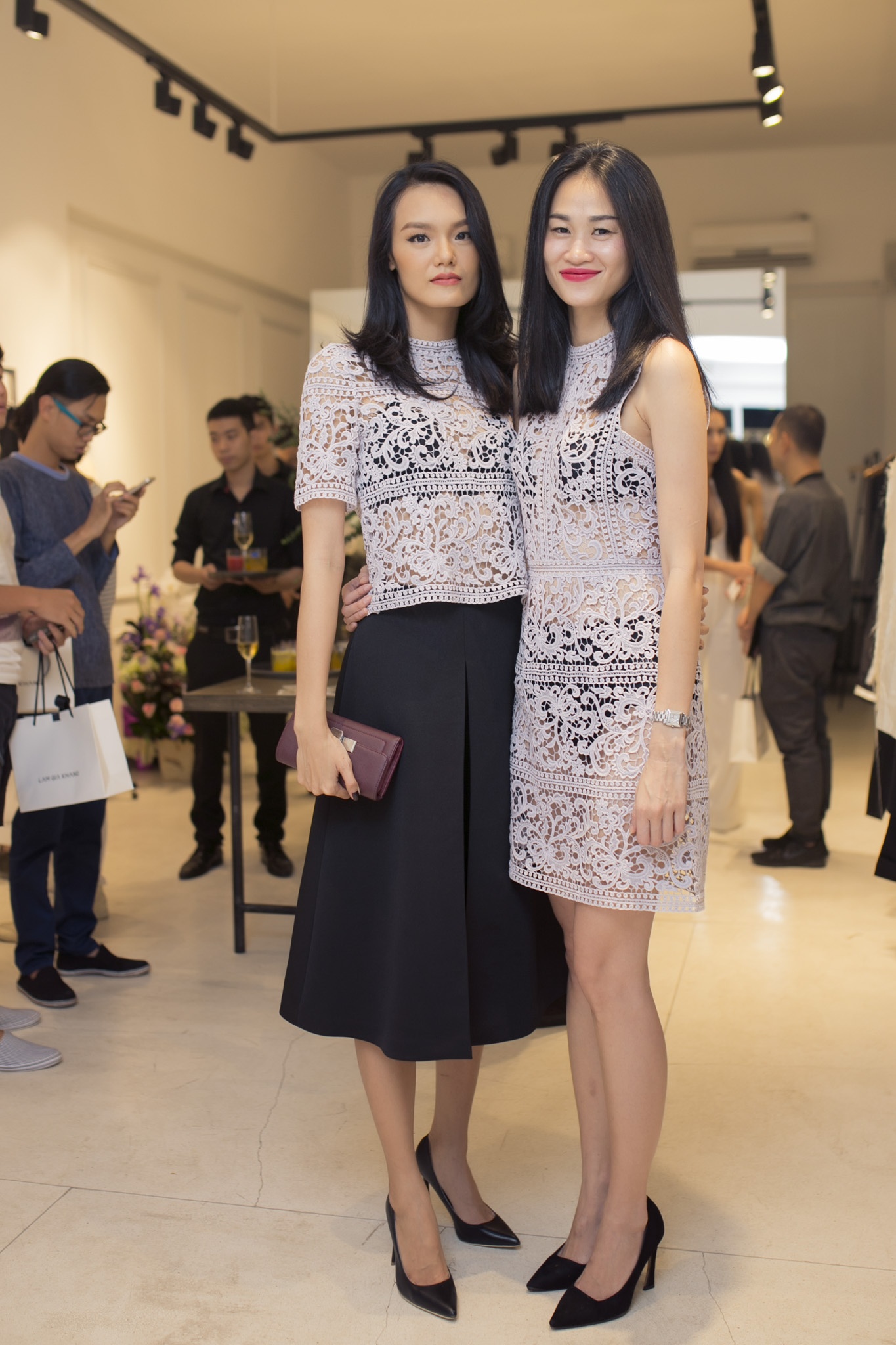 | Biên tập viên thời trang Thanh Trúc (phải) diện nguyên cây ren mỏng gợi cảm. |