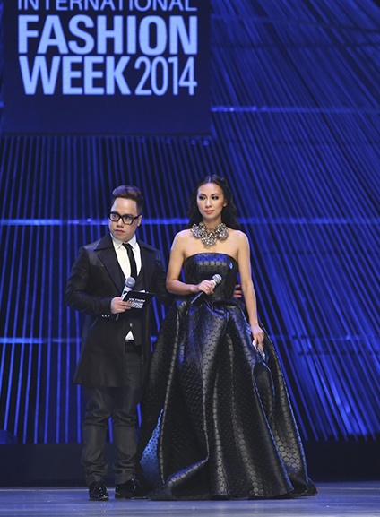 Nữ MC chính của Tuần lễ thời trang quốc tế Việt Nam đã khiến giới truyền thông lẫn các nghệ sĩ bất ngờ với hành động độc đáo và ấn tượng trên thảm đỏ đêm bế mạc 6/12.
